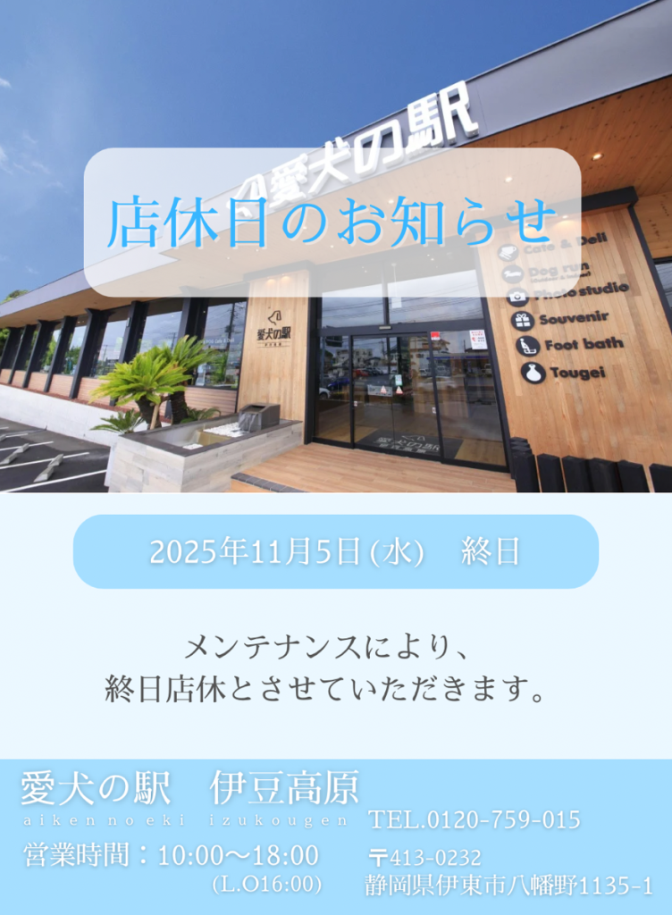 2025年11月5日(水)は終日メンテナンスにより店休とさせていただきます。